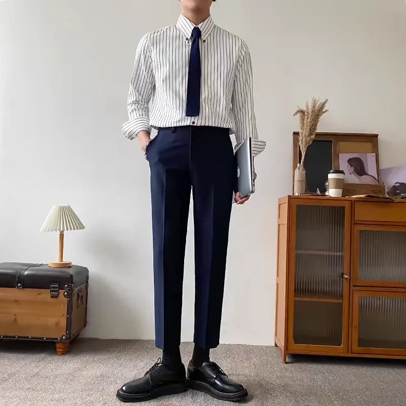 Elevate your everyday look with this Striped Slim Fit Men's Shirt, blending sharp business casual vibes with a splash of Korean style. The long sleeves and sleek stripes keep it cool and contemporary, while the tailored fit flatters your shape effortlessly. Perfect for the office or a casual night out, this top adds a fun, fashionable edge to your wardrobe without trying too hard. Ready to turn heads? This shirt’s got you covered!